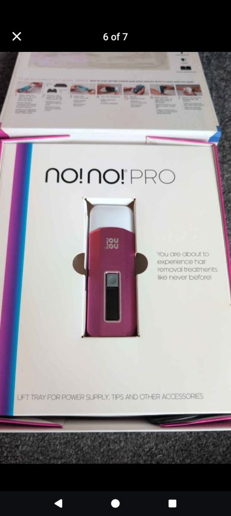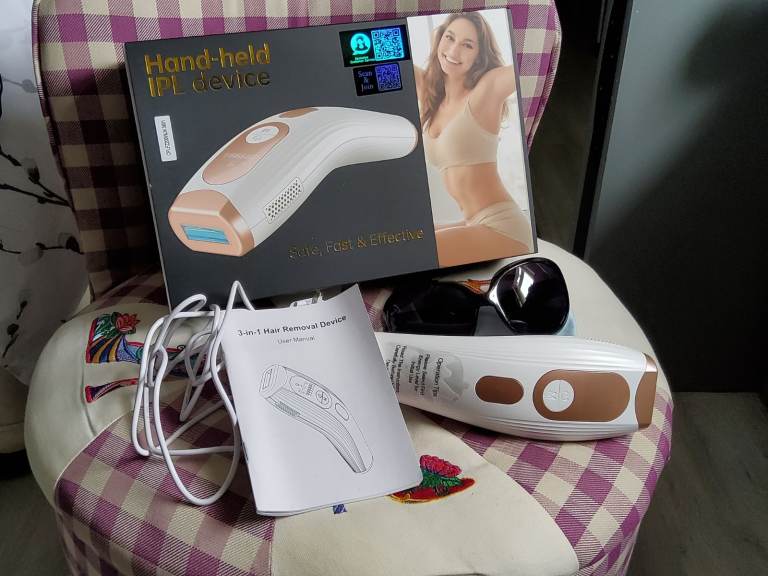 IPL hair removal device. Great device to hair free body. Has HR (Hair removal mode) SC (Skin Care mode) AT ( Acne Treatment, this minimises acne scarring on the face to leave softer and smoother skin. 9 Power levels. Instructions included.