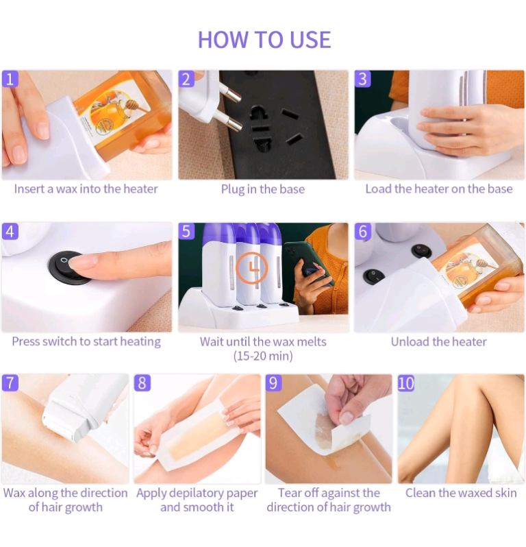 【Meet All Hair Removal Needs】The wax melted by depilatory wax heater can be used to remove excess hair from various parts of the body, such as face, lips, arms, armpits, legs, bikini area, etc. Make your skin look smoother, more delicate, and radiant.