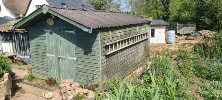 A big shed that comes with a floor. It is watertight and was insulated. Partly dismantled and structurally sound although the roof might require replacing at some point.