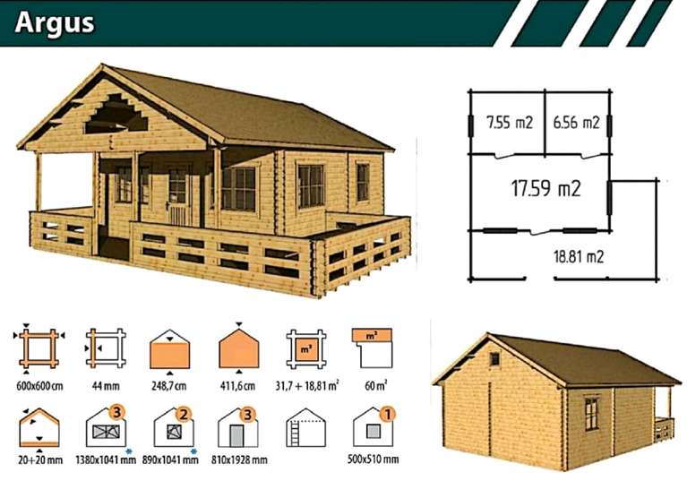 Timber cabin "Argus" 6×6m - finance available