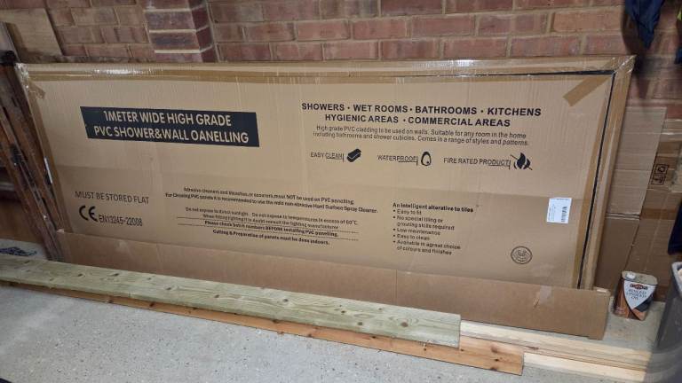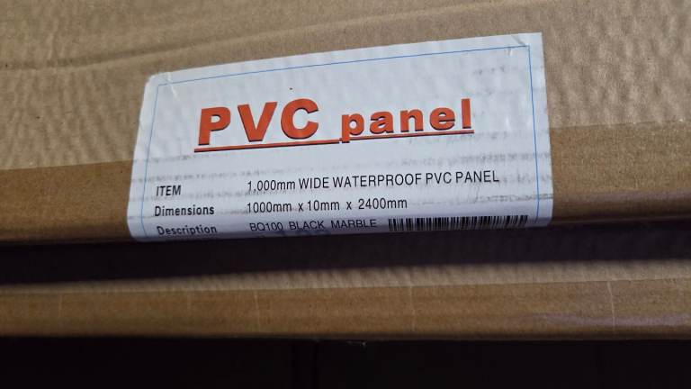 2 x new, sealed PVC black marble shower panelling from Victorian Plumbing.