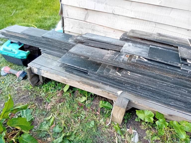 Black cement cladding sheets have 35 brand new at 3m then bulk of all different sizes some diffrent size ones have pilot on them where they need to be when fitted have 2 rolls of building paper brand new started drip trims mesh vents for air and to stop rodents corner trims finishing trims cladding screws and finishing screws black rubber gaskets for the timbers ideal for cladding man cave or garden room just paint with black masonry paint when fitted put pics of the prices they would be looking for £500 for lot can come see if interested.