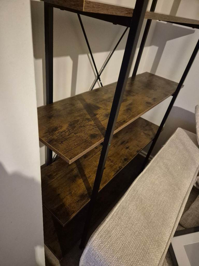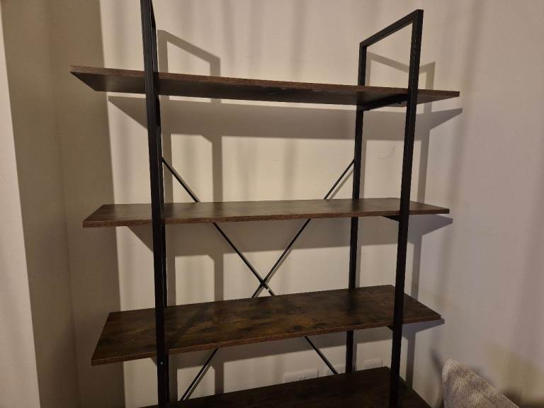 5 shelves heavy duty book shelf or display unit. Black steel and brown wood. Good quality pick up only