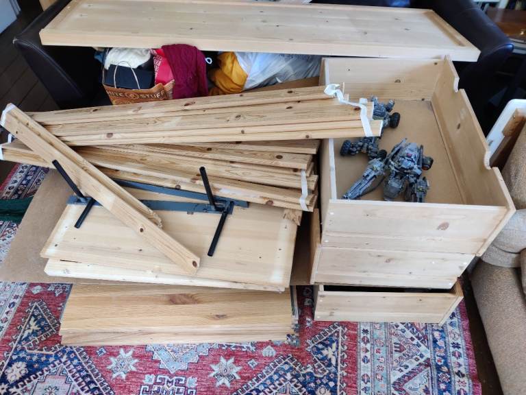 Ikea Ivar Bookcase, Ikea childrens wardrobe and chest of drawers. All solid pine and assembled in 2004. Well seasoned wood. Items have been dissasembled so reassembly is required. Chest of drawers runners are faulty but wood is in good condition. Assembled images are for reference.