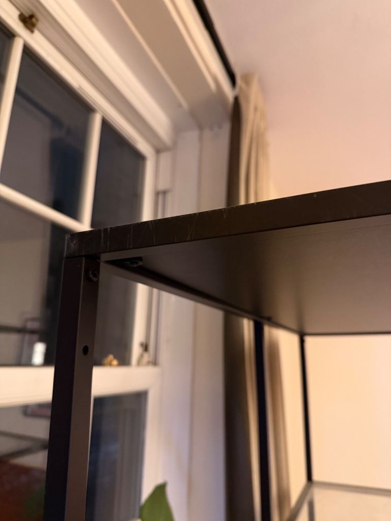 Great condition, no scratches to the glass shelves. Minor scratches to the outside frame as pictured from moving