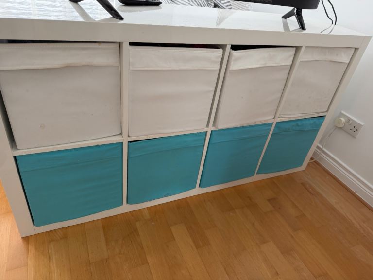 IKEA KALLAX white Shelving unit with 8 storage boxes