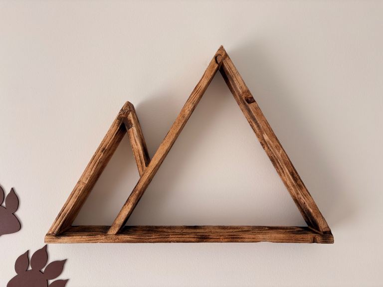 Lovely wooden shelf with a unique mountain design. I’ve used this as nursery decor for a woodland/national park themed room.