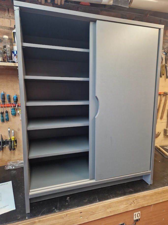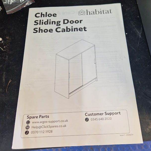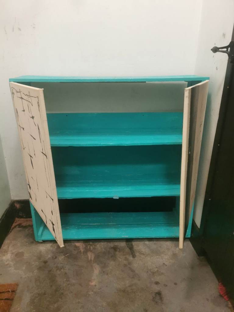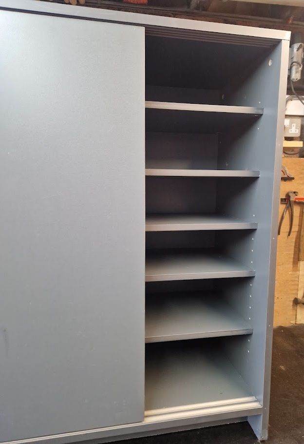 Habitat Sliding door shoe cabinet. A little bit of damage to the corner, but otherwise in really good condition.