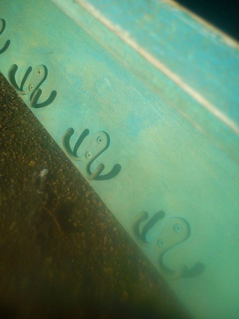 Upcycled, shabby chic shelf with hooks.