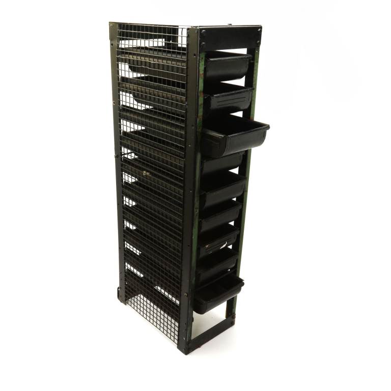 Vintage metal industrial trays shelves restaurant workshop interior designer