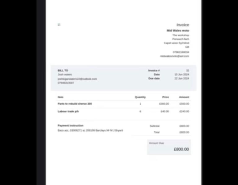 Invoices in the photos