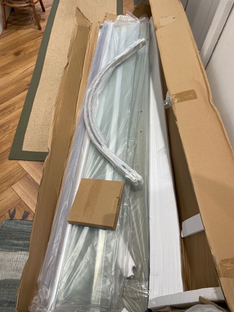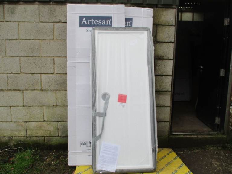 Brand new April Destini 800mm quadrant shower door, product AP9301. Semi framed quadrant door with polished silver frame. 6mm toughened safety glass and 5mm fixed panel. Height 1850mm. Polished silver aluminium handles. Genuine reason for sale. RRP £484