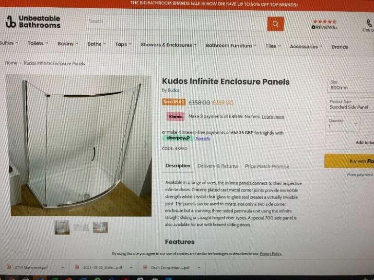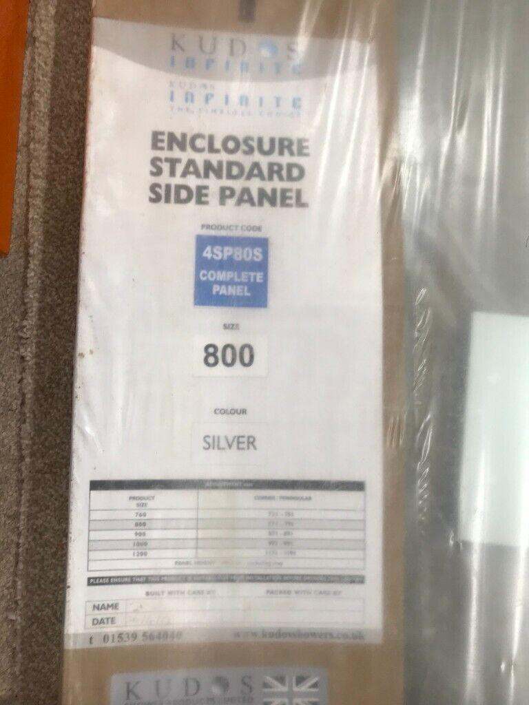 Kudos Infinite Silver Standard Side Panel - 800mm - 4SP80S. Kudos Infinite 4SP80S Silver Standard Side Panel - 800mmPanels are Unhanded and Can be Fitted to Either Side of The Door.Kudos Enclosure Panel Feature:8mm toughened safety glass (6mm toughened safety glass for 700 special side panel)Lifetime Manufacturers GuaranteeTechnical Specification:Length: 800mmPanel Height: 1900mm (Excluding Tray)Adjustment: 771-791mm
