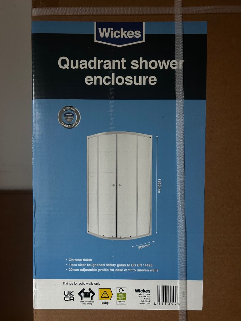 New and never opened Wickes quadrant shower enclosure