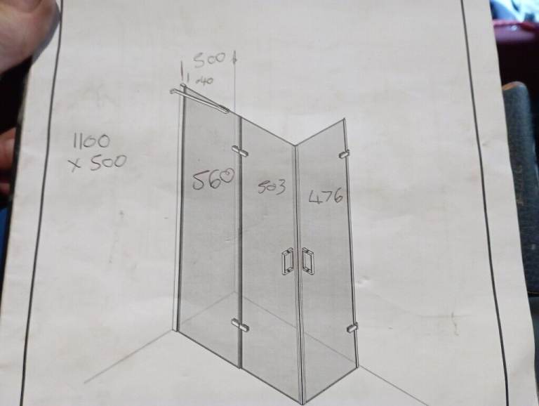 this would be idea if cutting through to a bedroom / other room so the tray is half in each room to save space. or even just to use the main panel and 1 door as a walk in screen on a large tray.