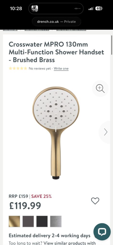 Crosswater MPRO 130mm Multi-Function Shower Handset - Brushed Brass