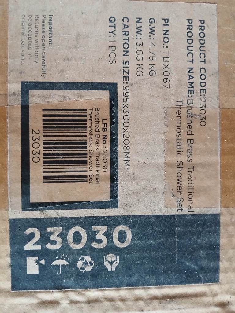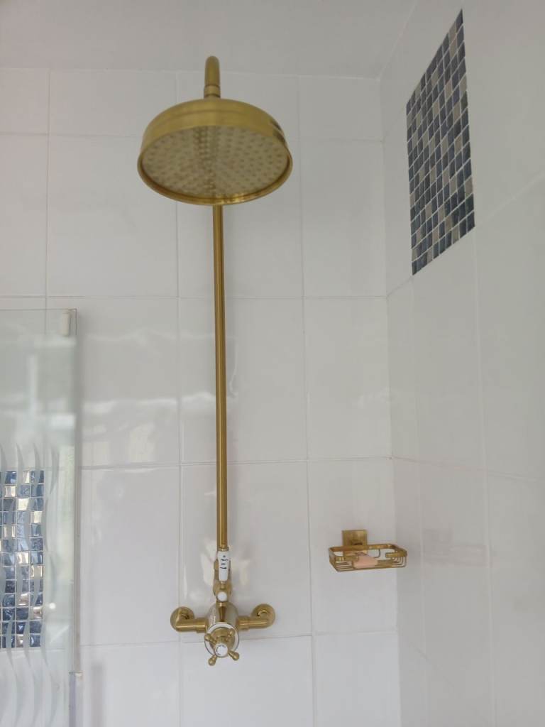 Brushed brass traditional thermostatic shower kit - Brand New and still in box.