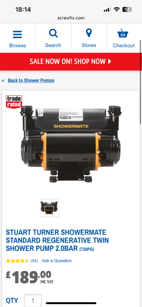 Posting for 6+ yearsGrundfos STR2-2.0 CN Shower Pump 98950220 2.0 Bar Twin Universal Shower Pump
