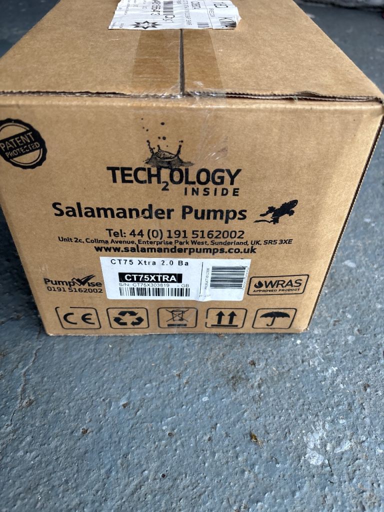 Brand new in box Salamander CT75XTRA 2.0 Bar shower pump.