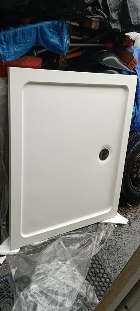 Ceramic shower tray 75x75 cm has a small chip but can be covered , tape is to hold drainer .