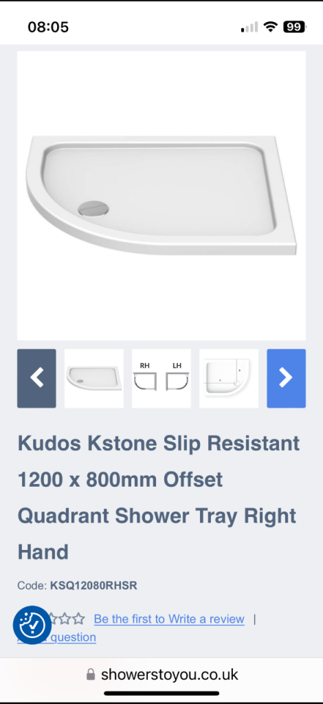 Kudos Kstone Offset Quadrant Shower Tray – 1200 x 800mm
