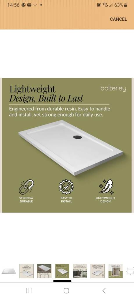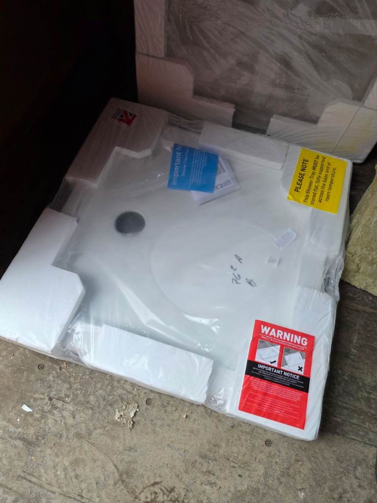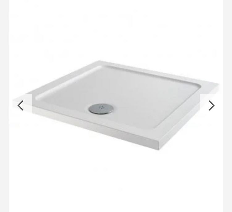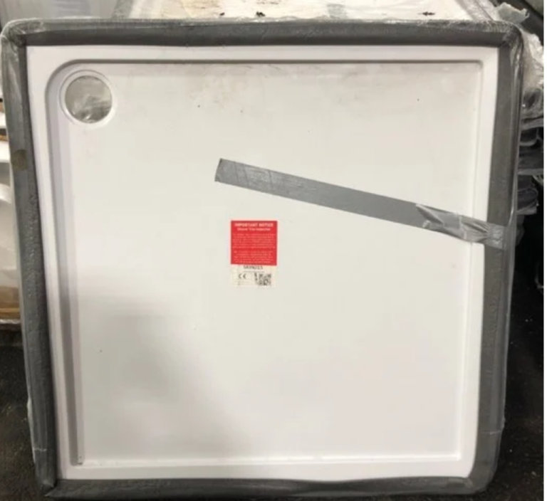 Unused stone cast shower tray 750mm square has minor flaws which would not be seen when installed. White.