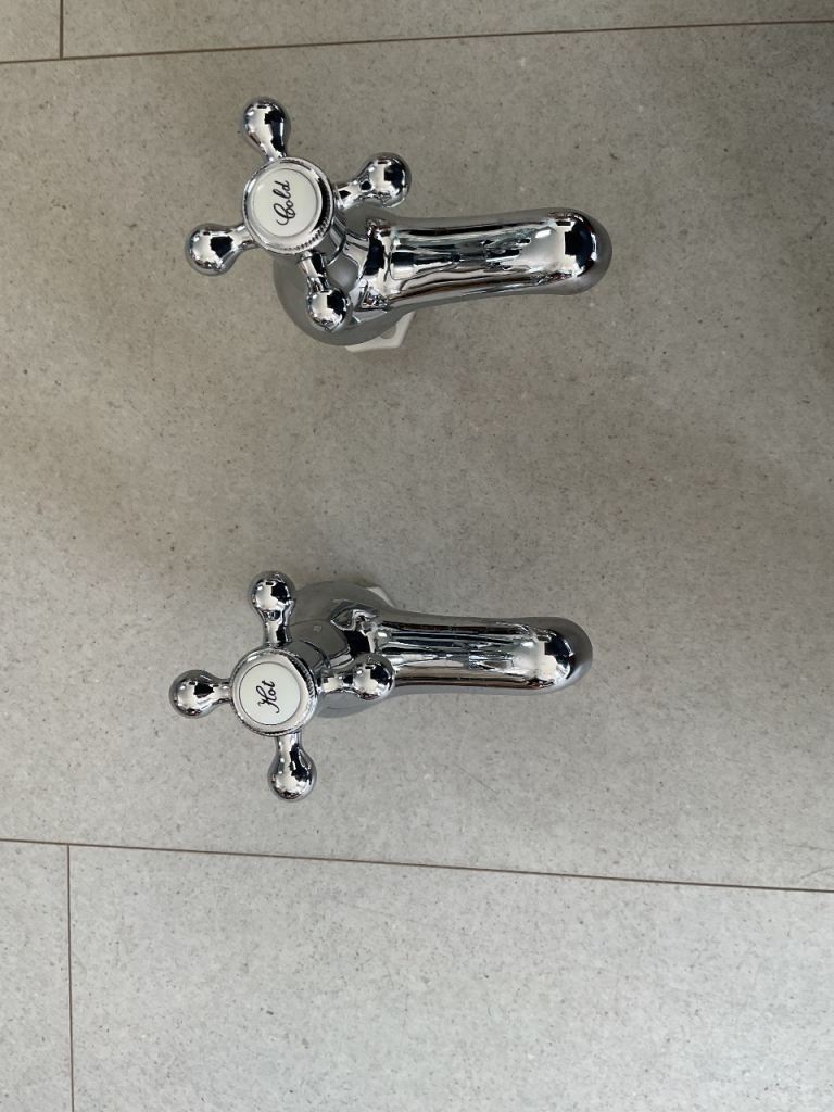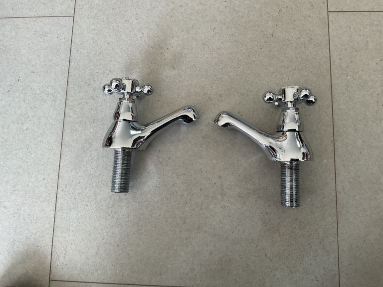 Excellent quality Victorian style basin taps with ceramic hot / cold marker discs . New old stock perfect condition .collection only , Lytchett Minster.