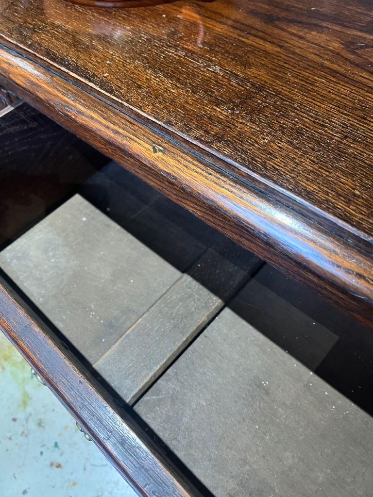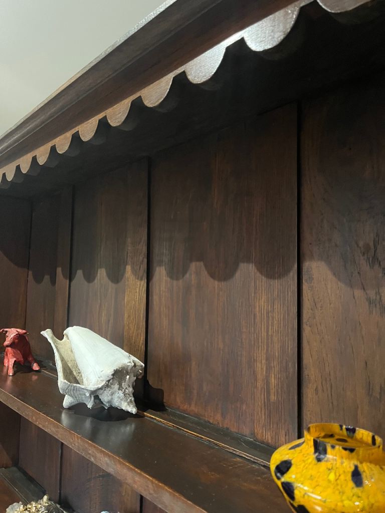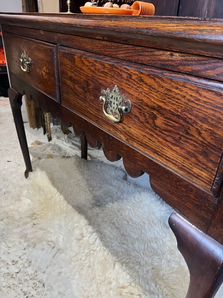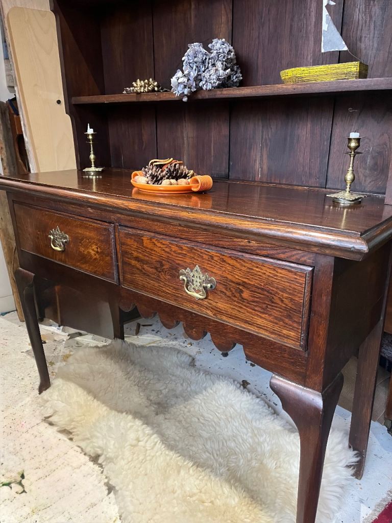 A beautiful 1800’s antique oak dresser. Lovely detail and colour and the top separates for transport . Measures approx 186cm high, 89 cm to base top, 127cm wide and 47cm deep.