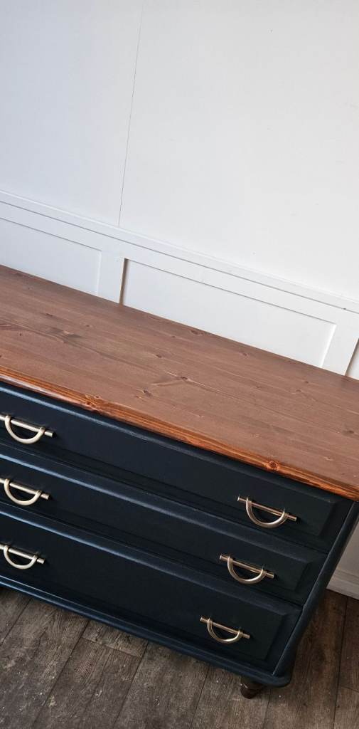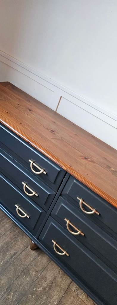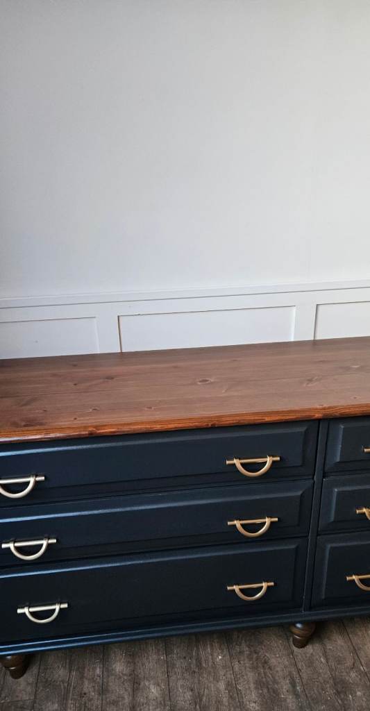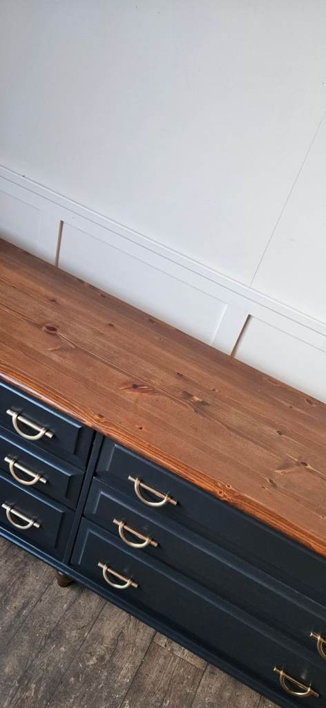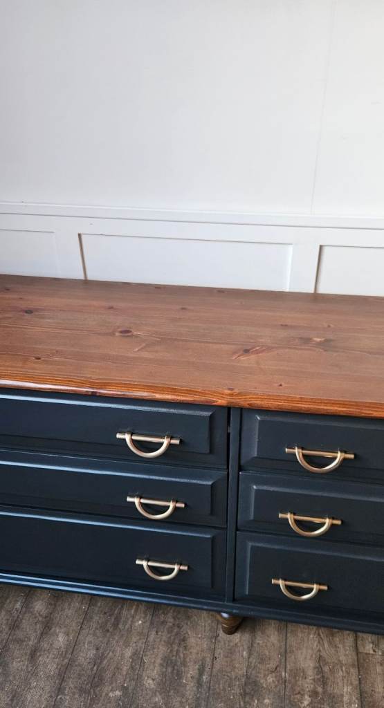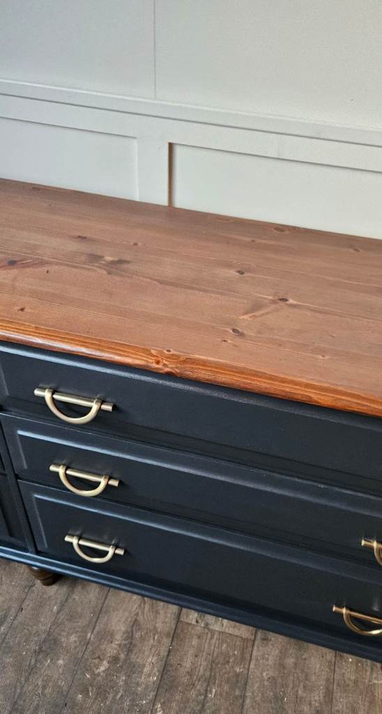 Beautiful solid pine sideboard finished in black, offering both style and practical storage. With six spacious drawers and elegant handles, this piece blends classic charm with a modern touch. The warm wooden top adds contrast and character, making it perfect for a dining room, living space, or hallway.