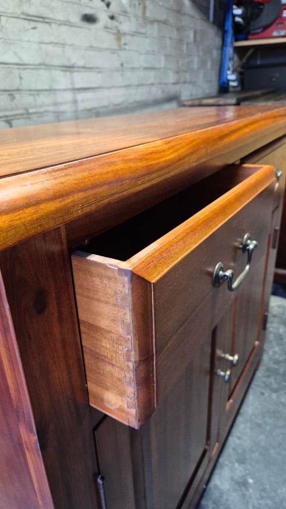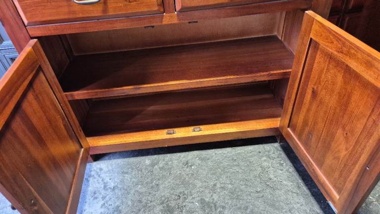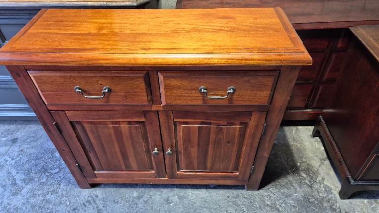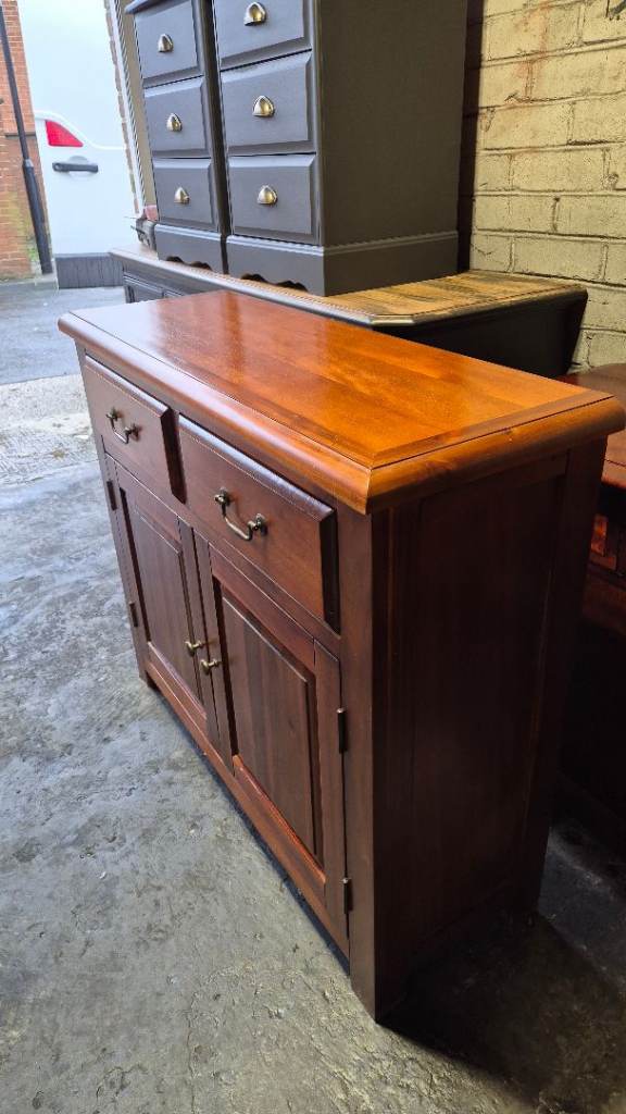Dunelm Solid Wood Winchester 2-Door Sideboard. This elegant piece is designed to complement a variety of interior settings. It is in good pre-owned condition, maintaining its excellent appearance. The sideboard offers ample storage capacity while its compact dimensions make it suitable for smaller areas. Its measurements are 100L x 35W x 85H cm. Collection is available from Houghton-le-Spring, DH4 area. Alternatively, local delivery can be arranged for an additional fee. Should delivery be requested, the item can be brought to your garden for your convenience in transferring it indoors.