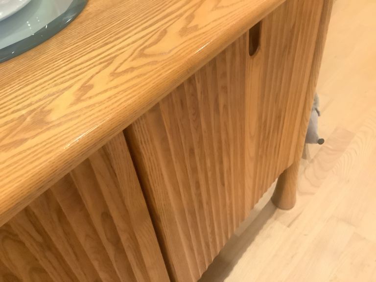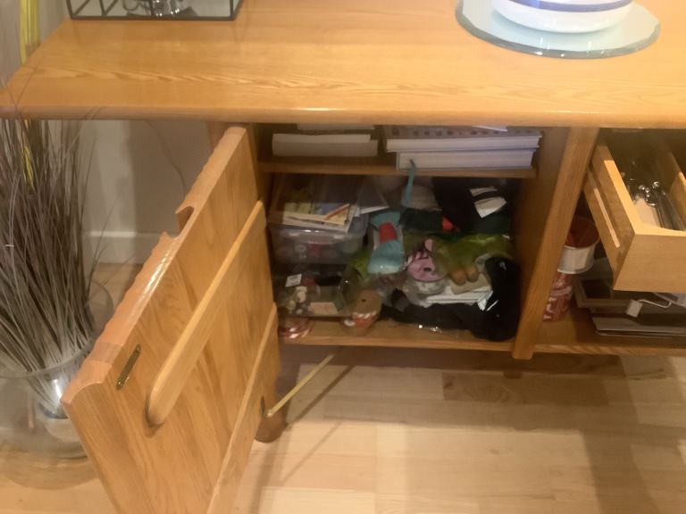 Ercol Saville two door sideboard,,Solid Elm light finish.,Has a Cutelry draw in side the right had cupboard.