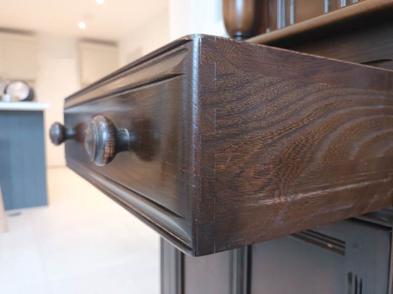 It is in almost perfect original condition. All of the cupboads and draws have been lined since new to prevent them from being marked.