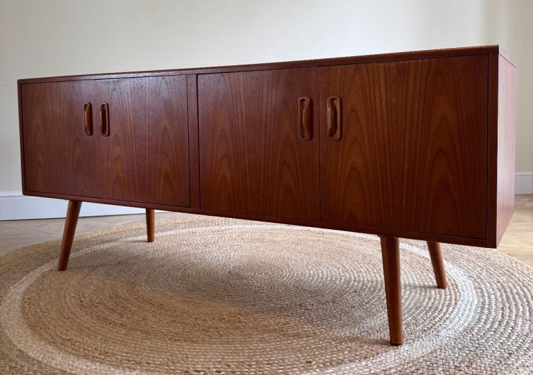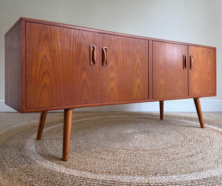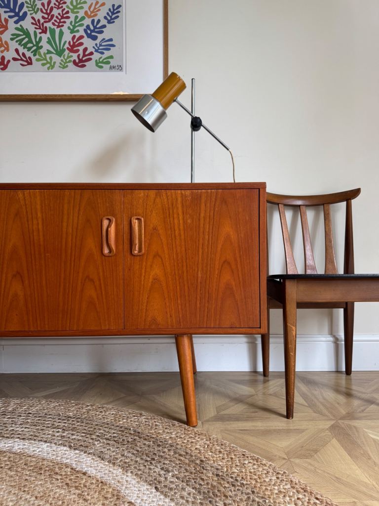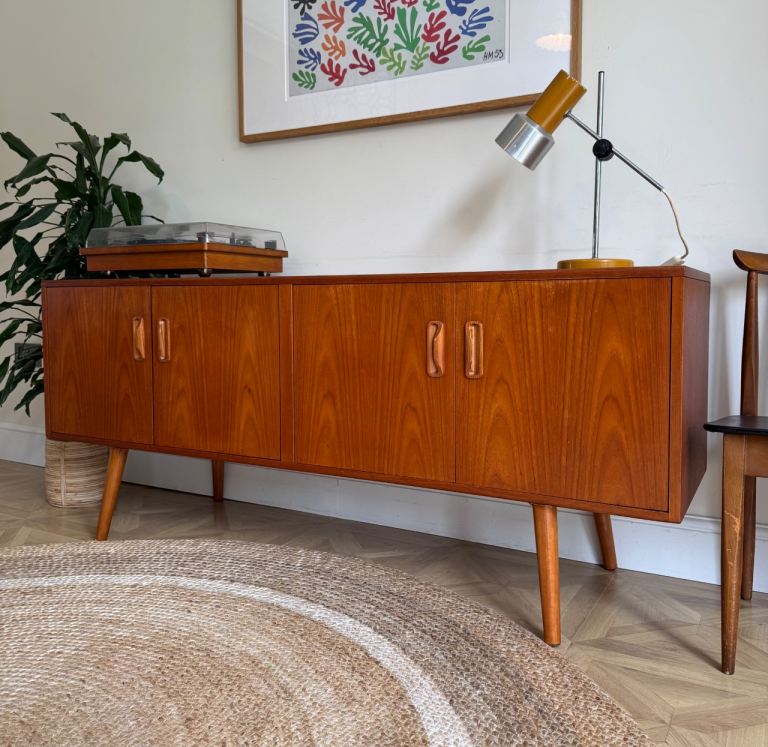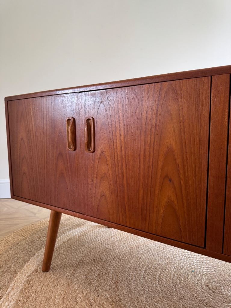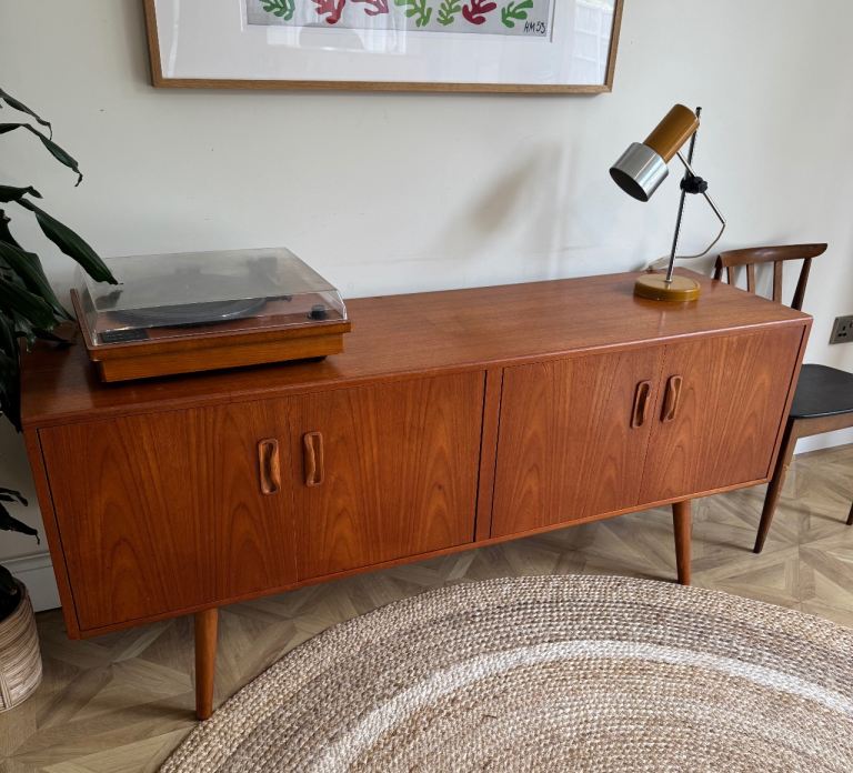 G plan vintage retro mid century tv record media drinks sideboard cabinet with tapered legs fitted.