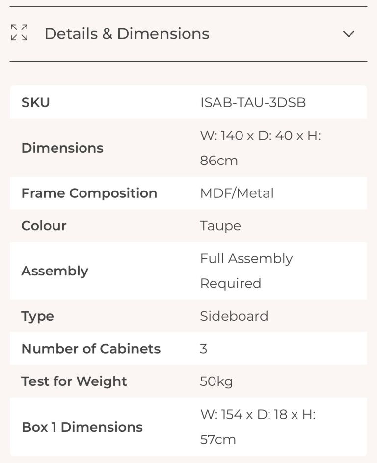 This product is bought recently and in excellent condition now. Fully assembled so no need to worry about fitting it and the product can be used as TV cabinet, sideboard, console table, buffet table or simply for storage with a modern outlook. Collection only.