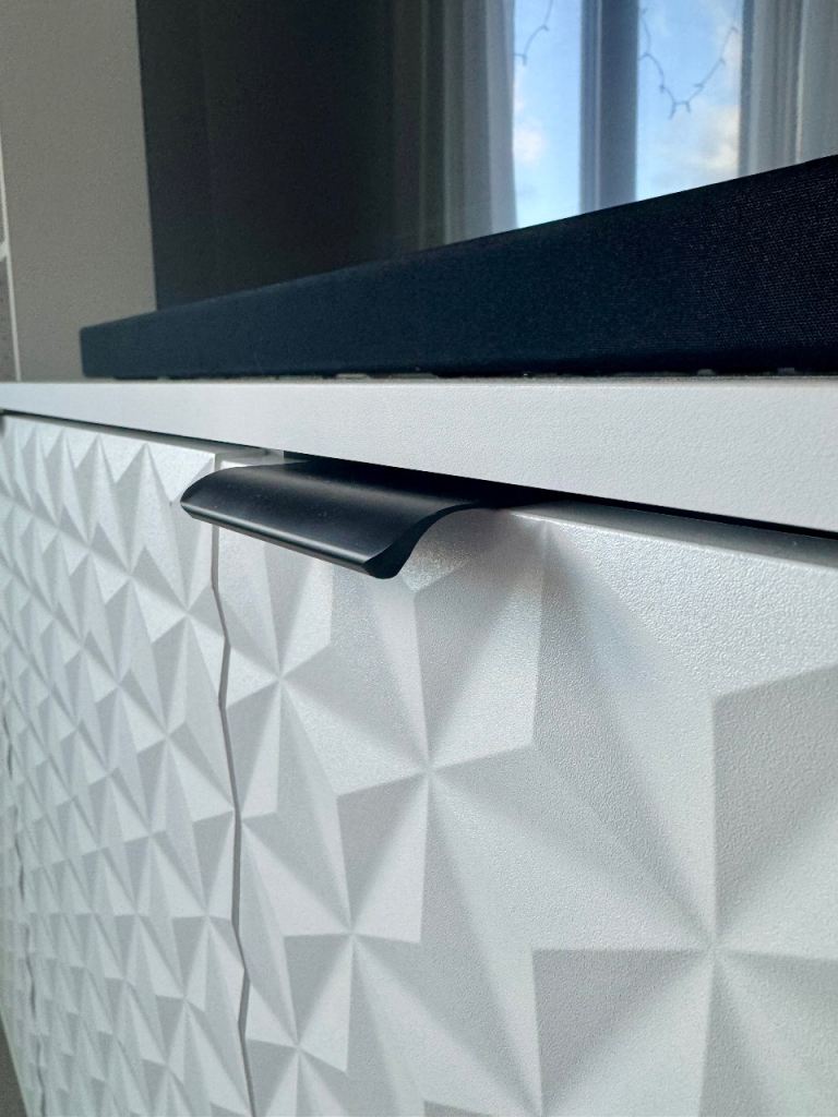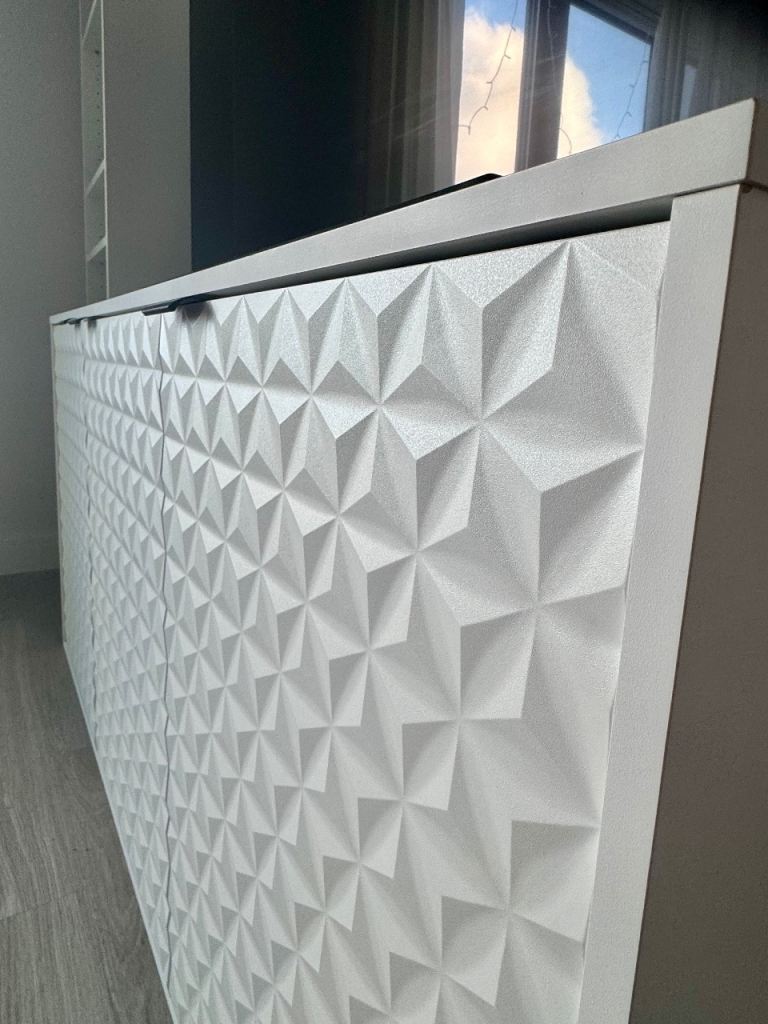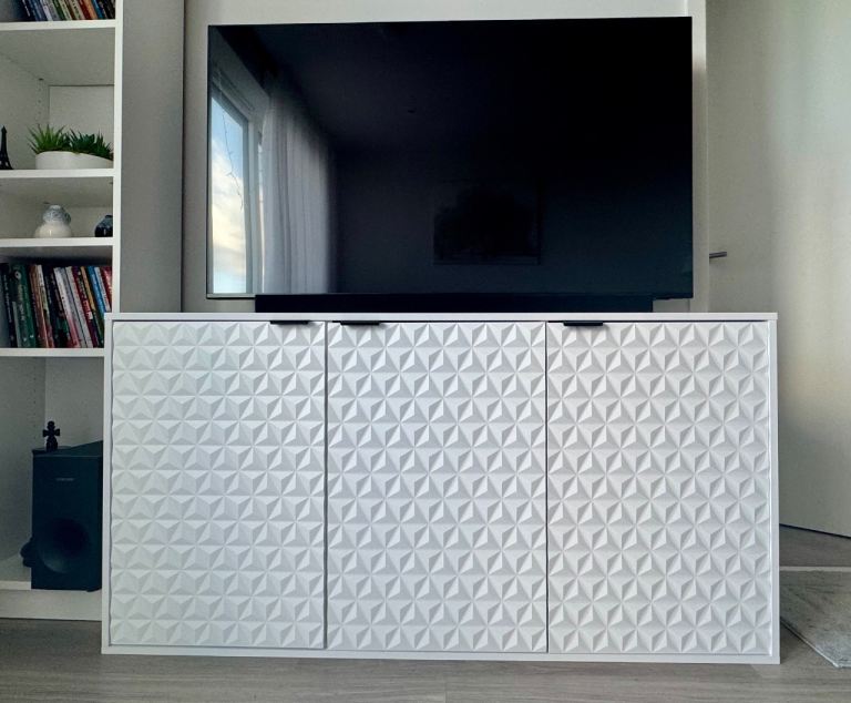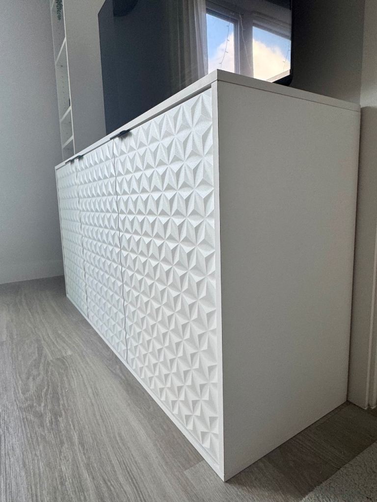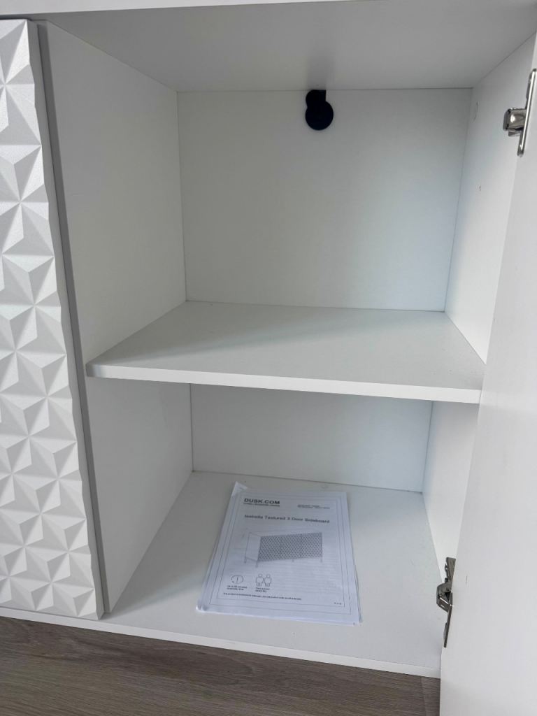 Posting for 1+ monthsIsabella 3 Door Sideboard White Gloss Excellent Condition with textured pattern.