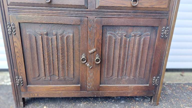 Lovely Jaycee Oak Welsh Dresser. Overall good condition but with some cosmetic wear as seen in the photos; ideal for refurbishment or upcycle project. W106cm, D43cm, H174cm. Priced to sell at £75 ono. Collection only.