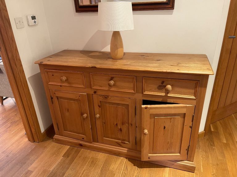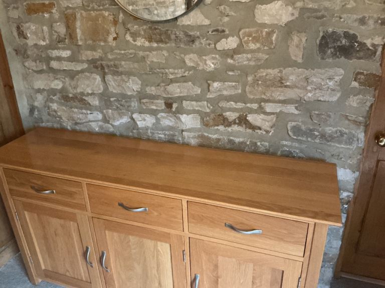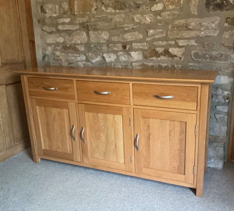 Used Large solid oak 3 door/ 3 drawer sideboard.