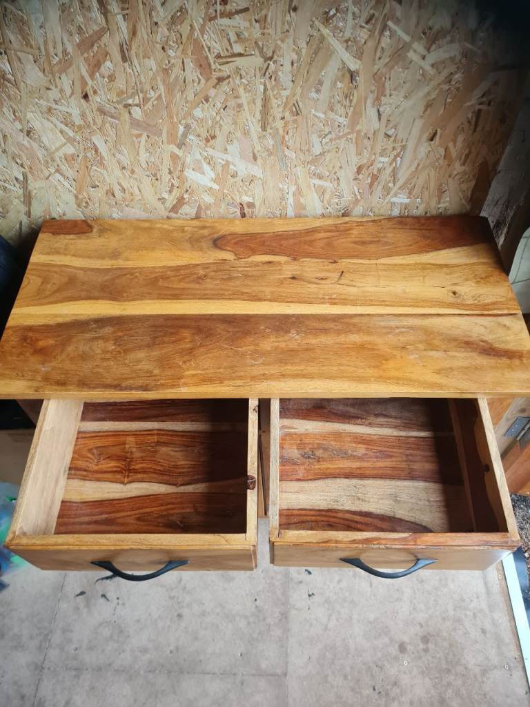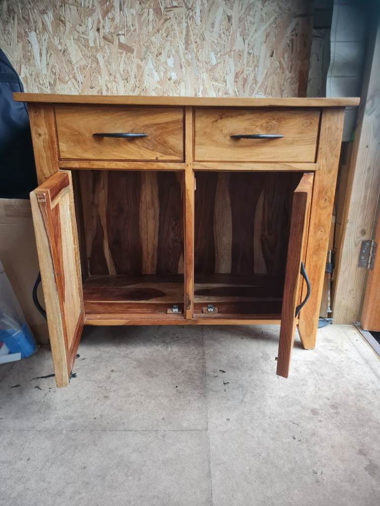 Solid Mango Wood sideboard. In great condition, with only a few light marks on the top. H 793mm, W 903mm, D 413mm. Collection from Creekmoor Poole. £100 ono.