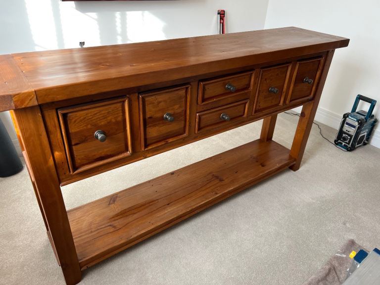 L 2.1m × H .85m × depth .5m great peice of solid wood furniture. Used a tv stand priced to move