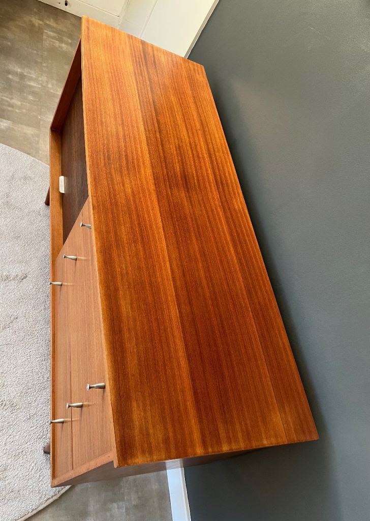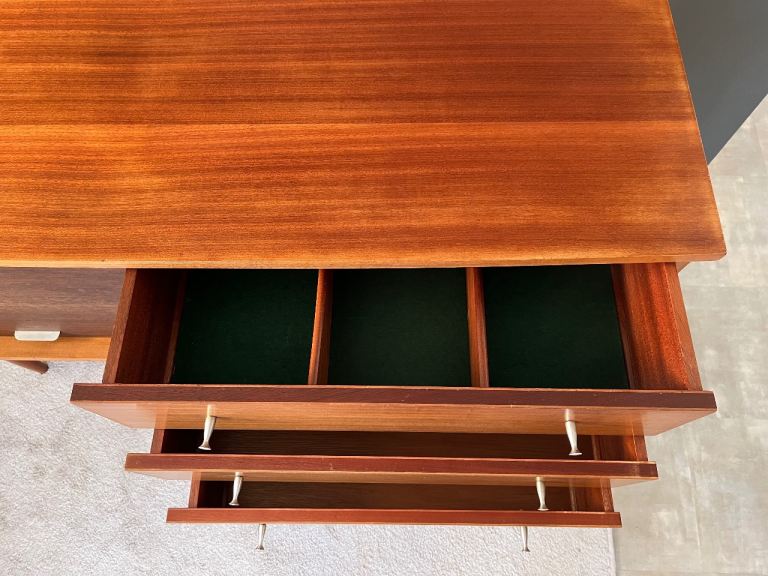 The top drawer contains wooden drawer dividers attached to a baize-covered base which can be removed from the drawer if desired.