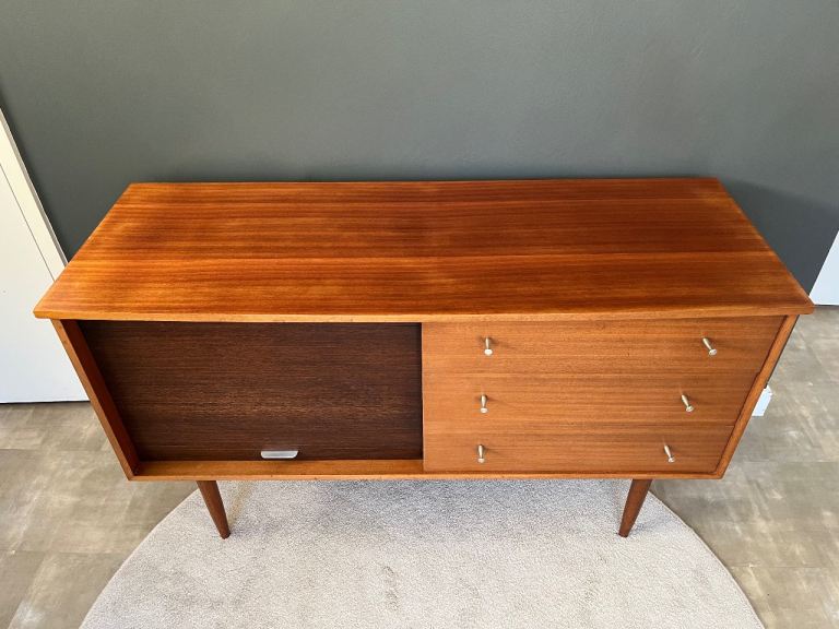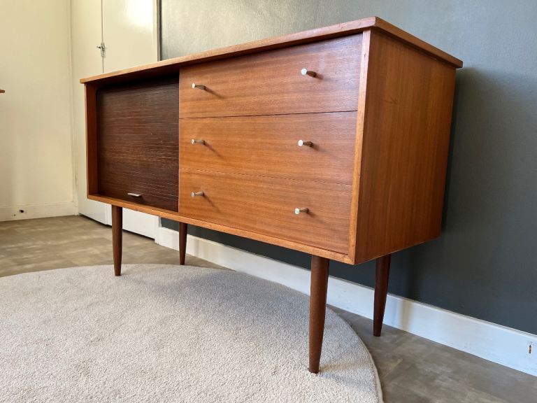Mid Century Vintage Tambour Roller Door Sideboard