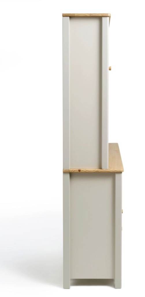 The open shelving is ideal for stacking books or showcasing some of your favourite ornaments. Finished with classic wooden rounded handles, the soft matte light grey lustre and rounded edges give this collection a warm, homely feel.