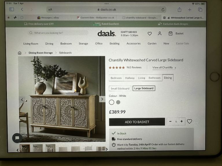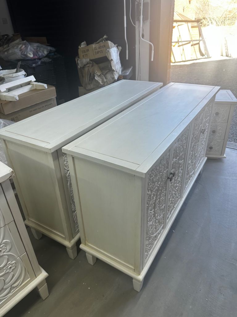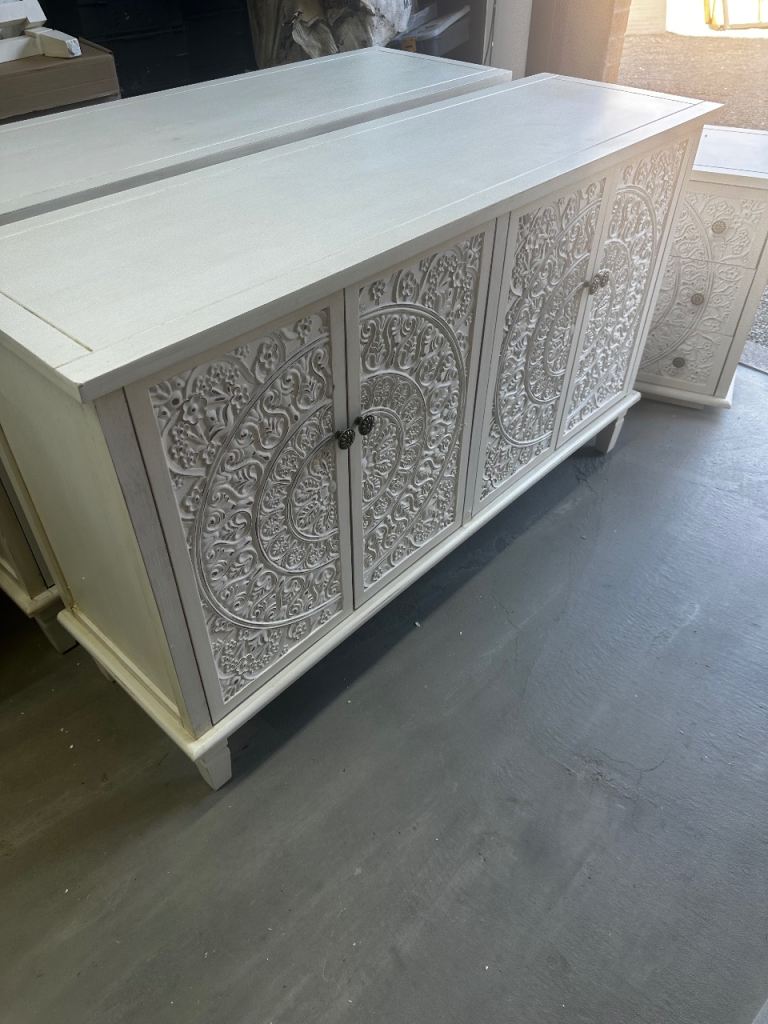 Brand new Daals Chantilly Whitewashed Carved Large Sideboard, this was used to dress a house for sale