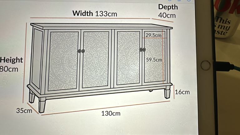 Dimensions are Width 133cm, Depth 40cm, Height 80cm, offering plenty of storage space.
