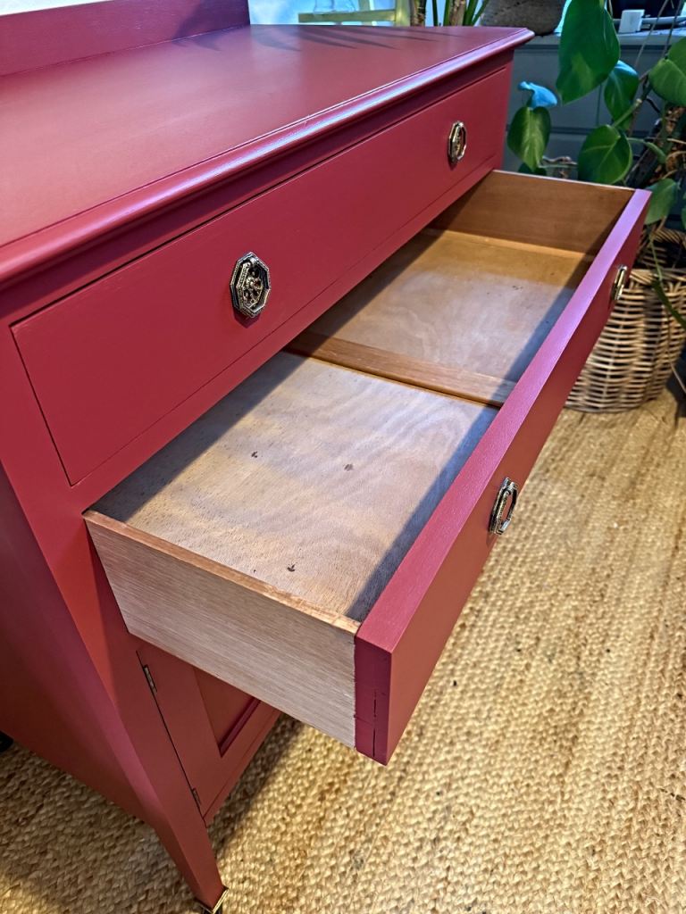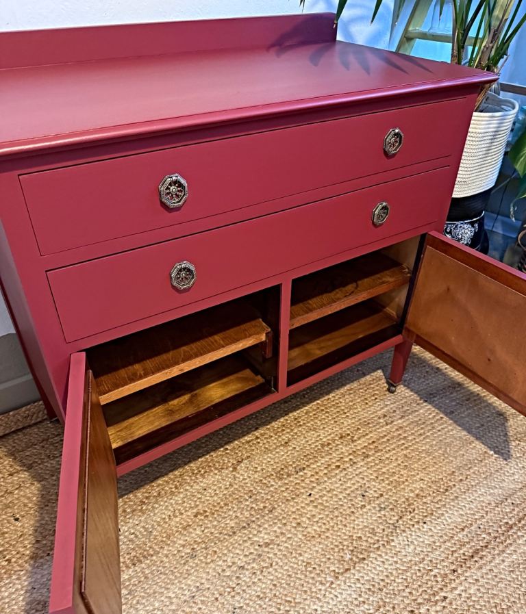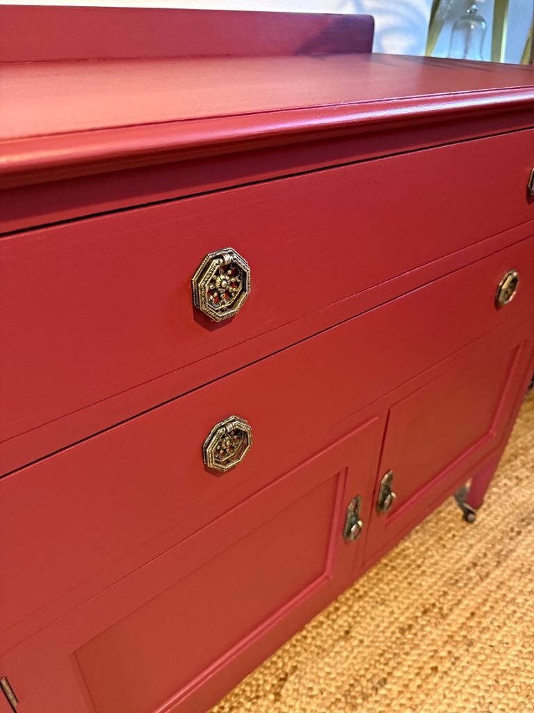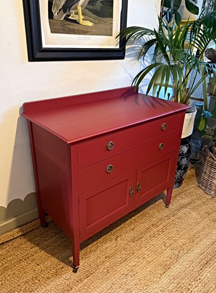 Posting for 10+ yearsNewly refurbished antique sideboard cabinet red wash stand