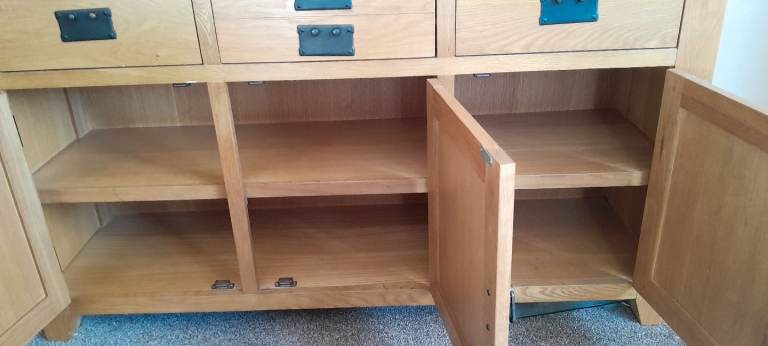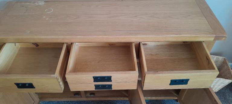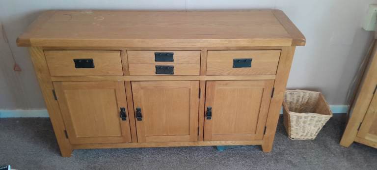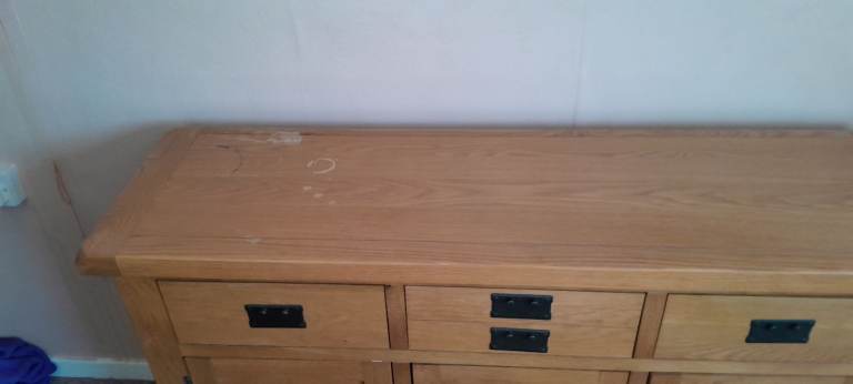 Oak Sideboard slightly damaged on top but a larger item will cover it. Failing that it needs a little care. Was £489 new.