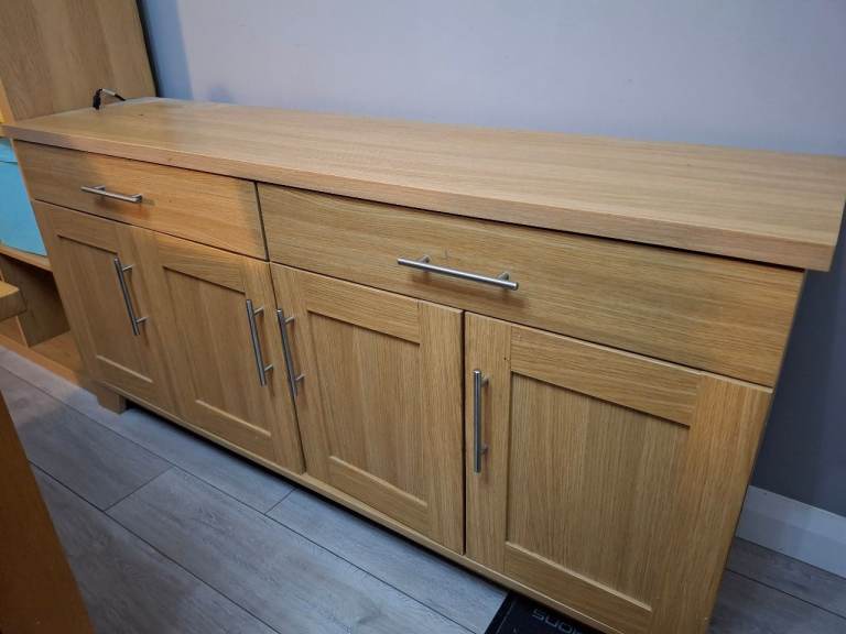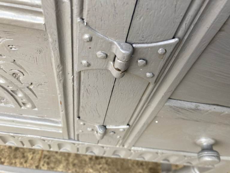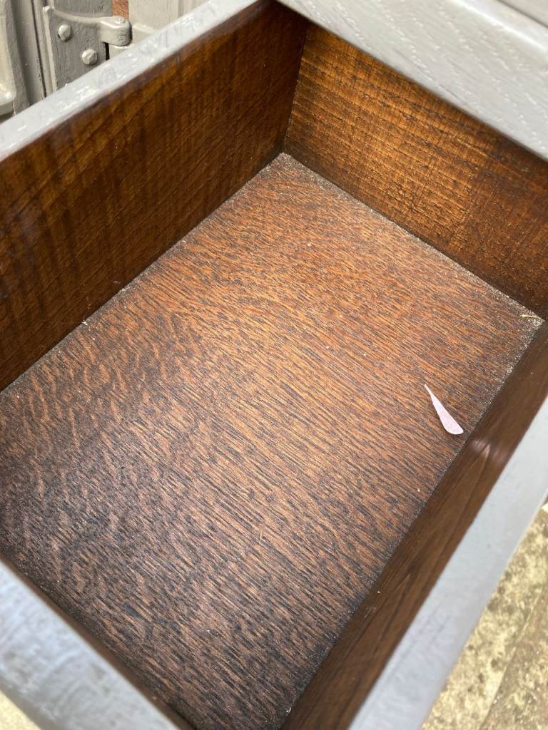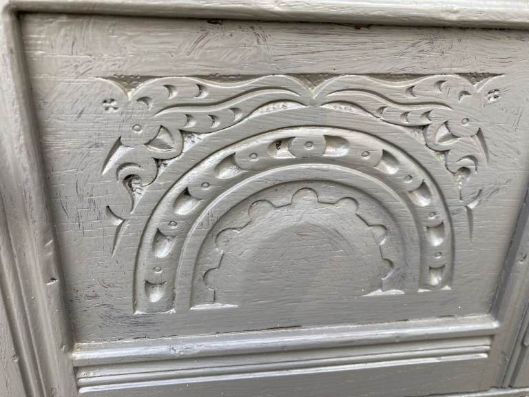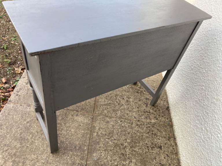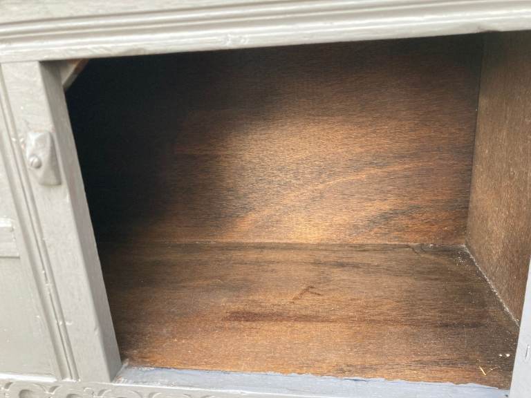Old Charm/Jacobean style grey painted sideboard. 2 drawers and cupboard.