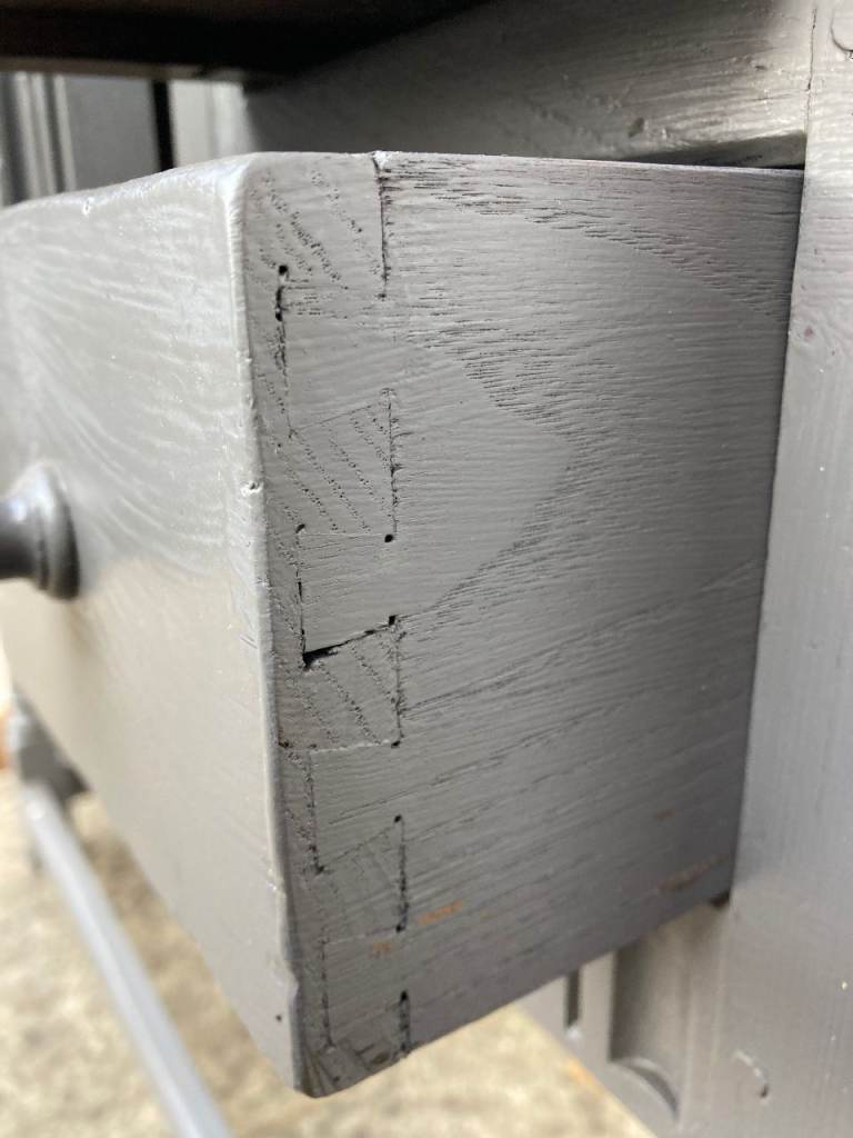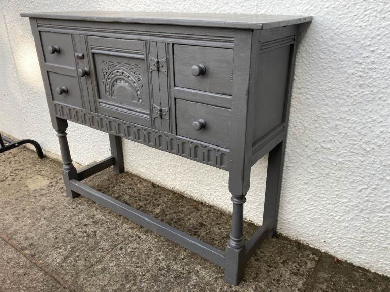 OLD CHARM/JACOBEAN STYLE GREY PAINTED SMALLER SIZE SIDEBOARD