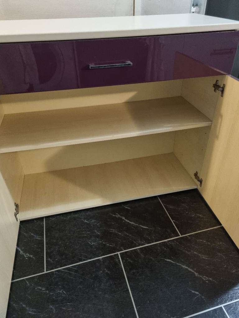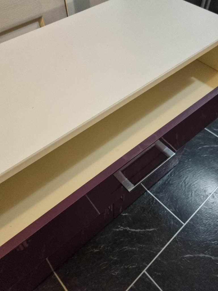Lovely colour sturdy unit, gloss finish. Small drawer on top and 2 doors with shelf inside. Slight mark inside and faint mark on top. Otherwise in great condition. Length 40 inches. Depth 16 inches. Height 33 inches. Collection only.. It will have to be carried down 2 flight of stairs.