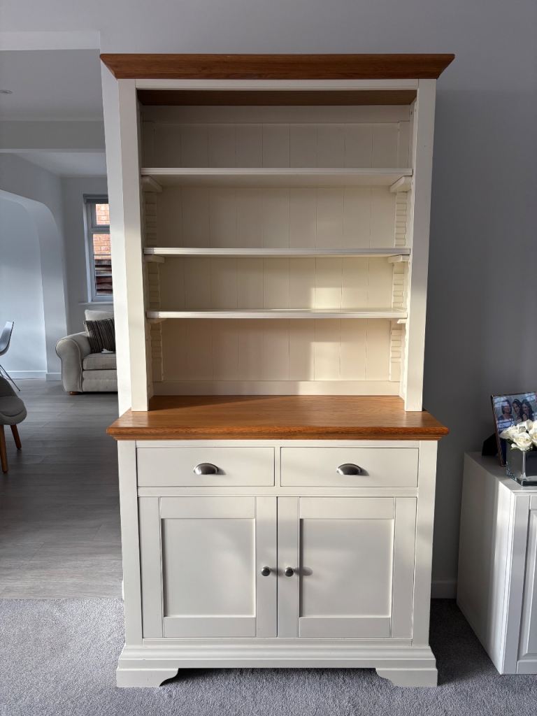 Dresser (top part) measurements: 111cm high, 107cm wide at top, 99cm at bottom. Shelves are adjustable.